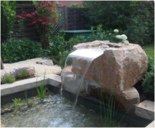 Home Home Über uns Über uns Aktuelles Aktuelles Kontakt Kontakt Impressum Impressum zurück zurück zurück Wasser im Garten findet man in vielen unterschiedlichen Formen. Grundsätzlich gibt es zwei wesentliche Bereiche:   Einerseits das komplette Themengebiet der Be- und Entwässerung,  andererseits die sichtbare Gestaltung mit Wasser.  Der Bereich Be- und Entwässerung umfasst die Bewässerungstechnik - z.B.  vom Hersteller ‚Gardena' -, die Thematik ‚Regenwasser' mit Versickerungs- rigolen oder Regenwasser speichern sowie Verlegen und / oder Anschlüsse an die Kanalisation.  Diese Bereiche sind im Garten zwingend notwendig, aber zumeist nicht sichtbar.  Sichtbares Wasser im Garten setzt Akzente und wertet den Garten auf. Dies wird beispielsweise erreicht durch Schwimmteiche, Teiche, formale  Wasserbecken, Sprudelsteine, Quellsteine oder Wasserspiele.